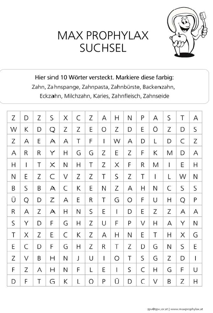 Zudem sorgt Max Prophylax für jede Menge Spaß mit Malvorlagen, einem Zahnputzkalender, dem Max-Prophylax-Quiz und einem fröhlichen Lied zum Zähneputzen von Ingrid Hofer.