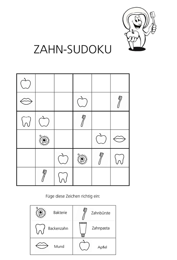 - Der Apfel steht für eine zahngesunde, möglichst zuckerfreie Ernährung.